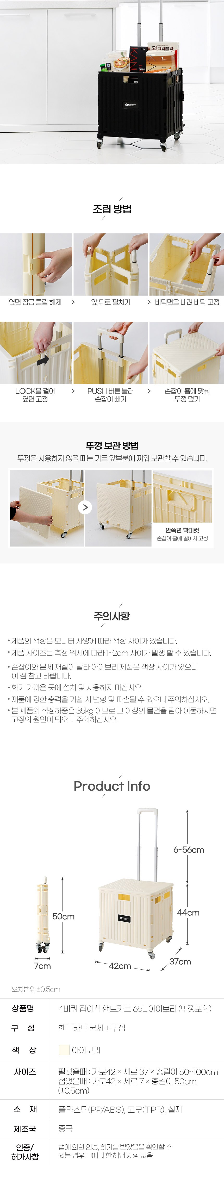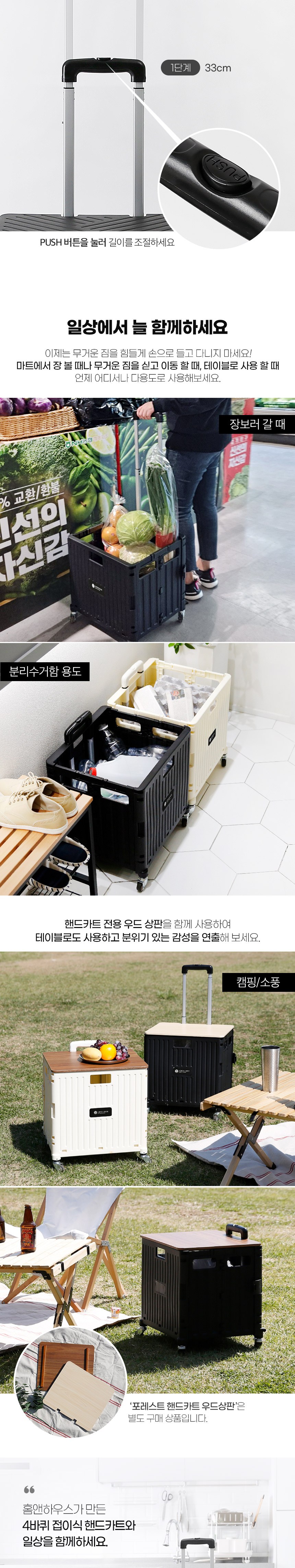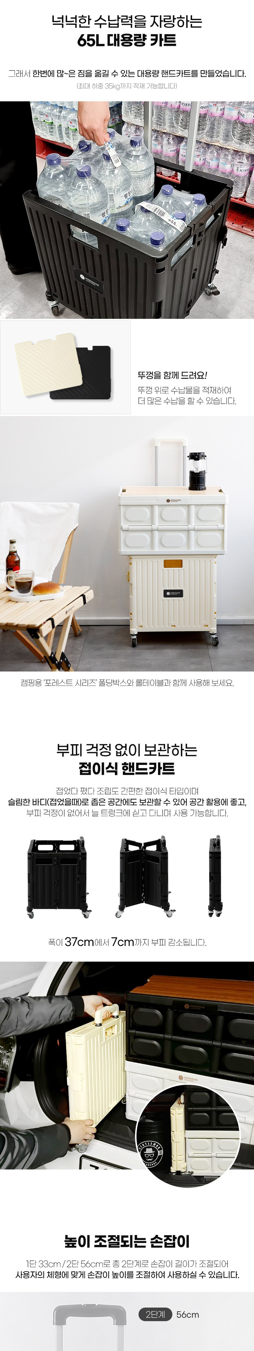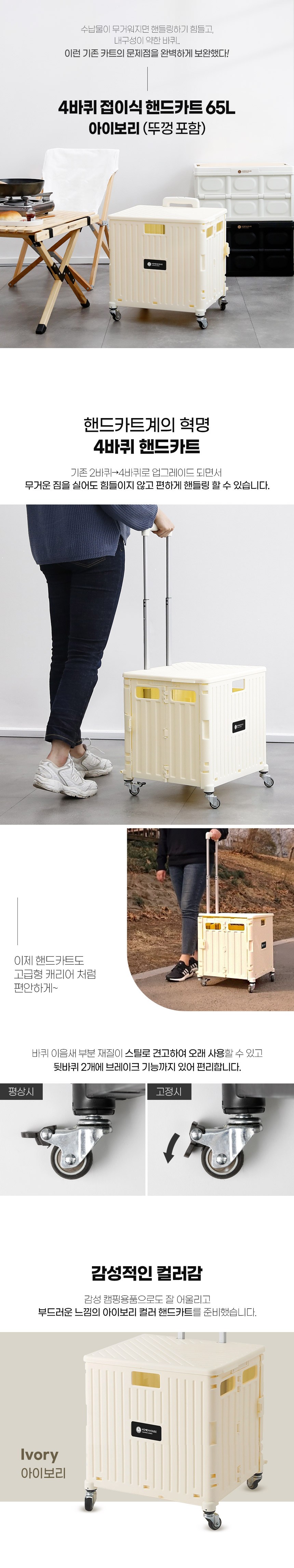 [홈앤하우스] 4바퀴 접이식 핸드카트 65L + 뚜껑 세트