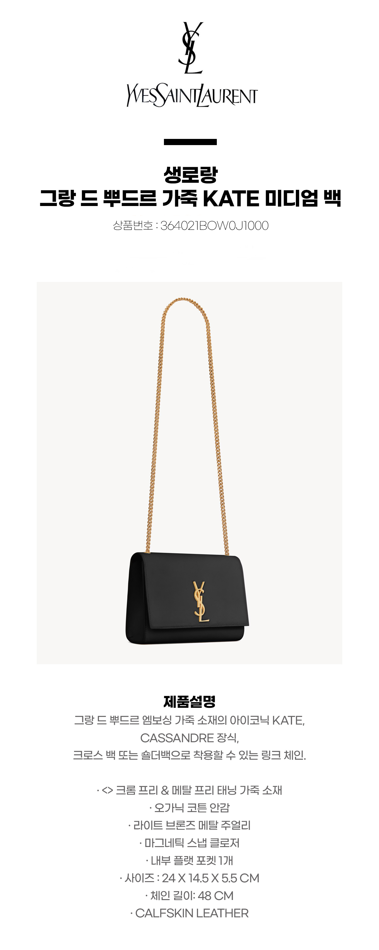 [생로랑] 그랑 드 뿌드르 가죽 KATE 미디엄 백