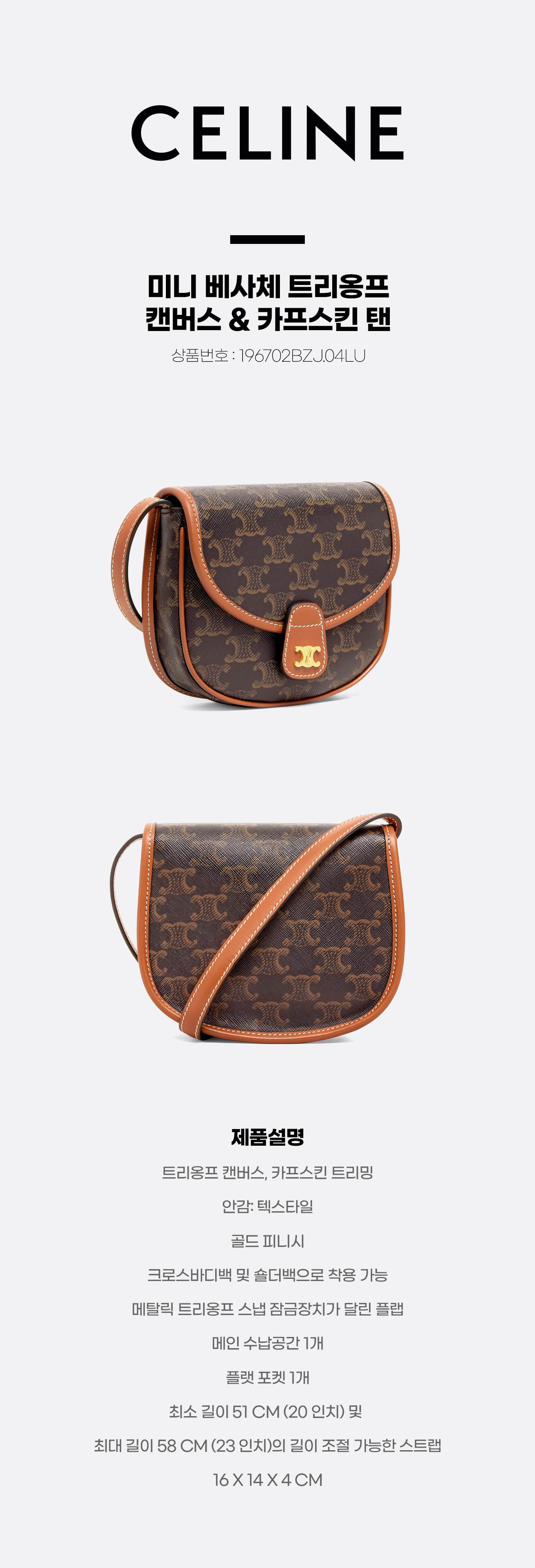 [셀린느] 미니 베사체 트리옹프 캔버스 & 카프스킨 탠