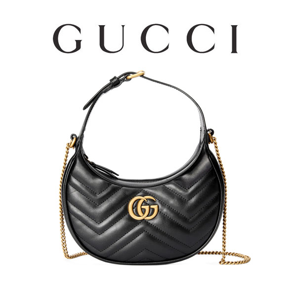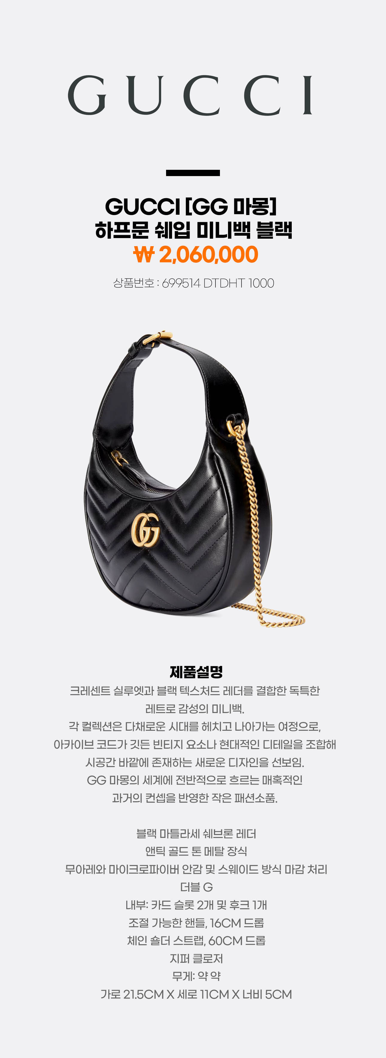 [GUCCI] 구찌 GG 마몽 하프문 쉐입 미니백 블랙