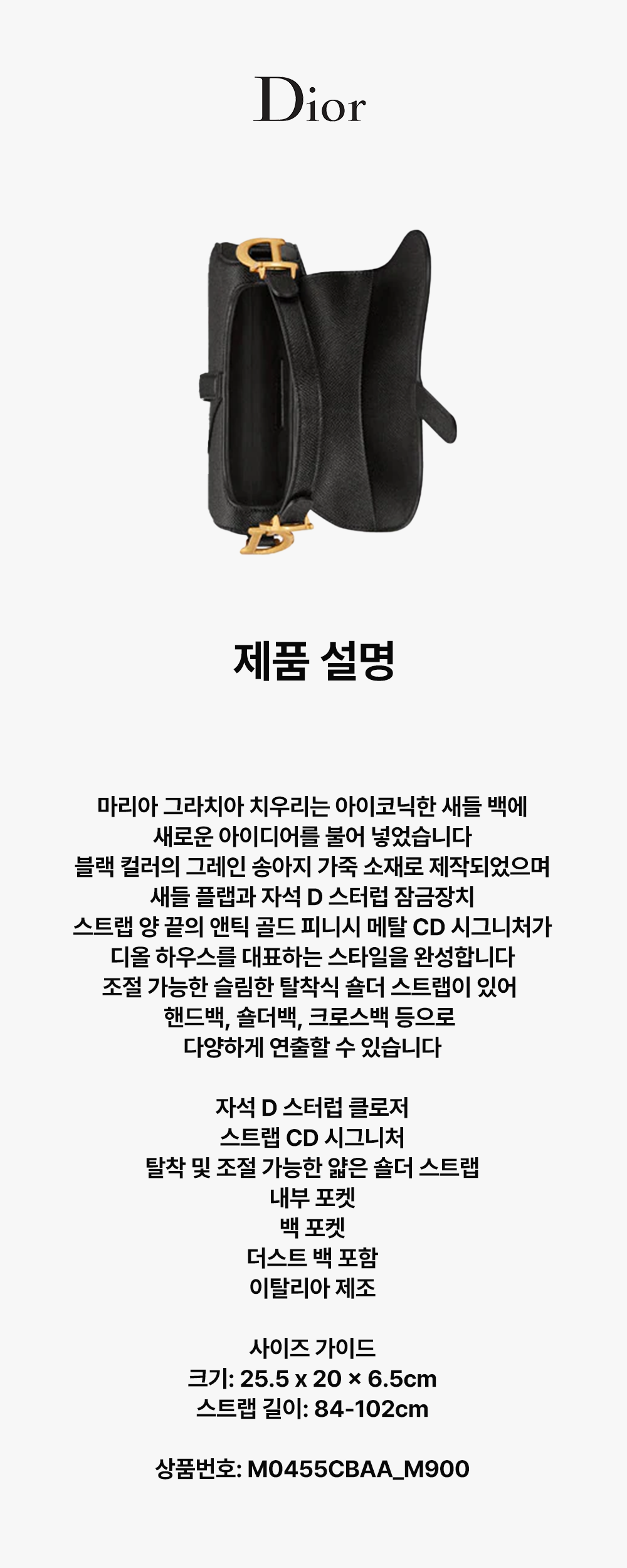 [디올] SADDLE 스트랩 백 블랙 그레인 송아지 가죽