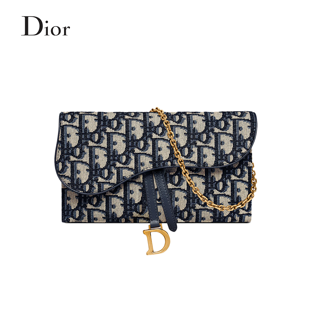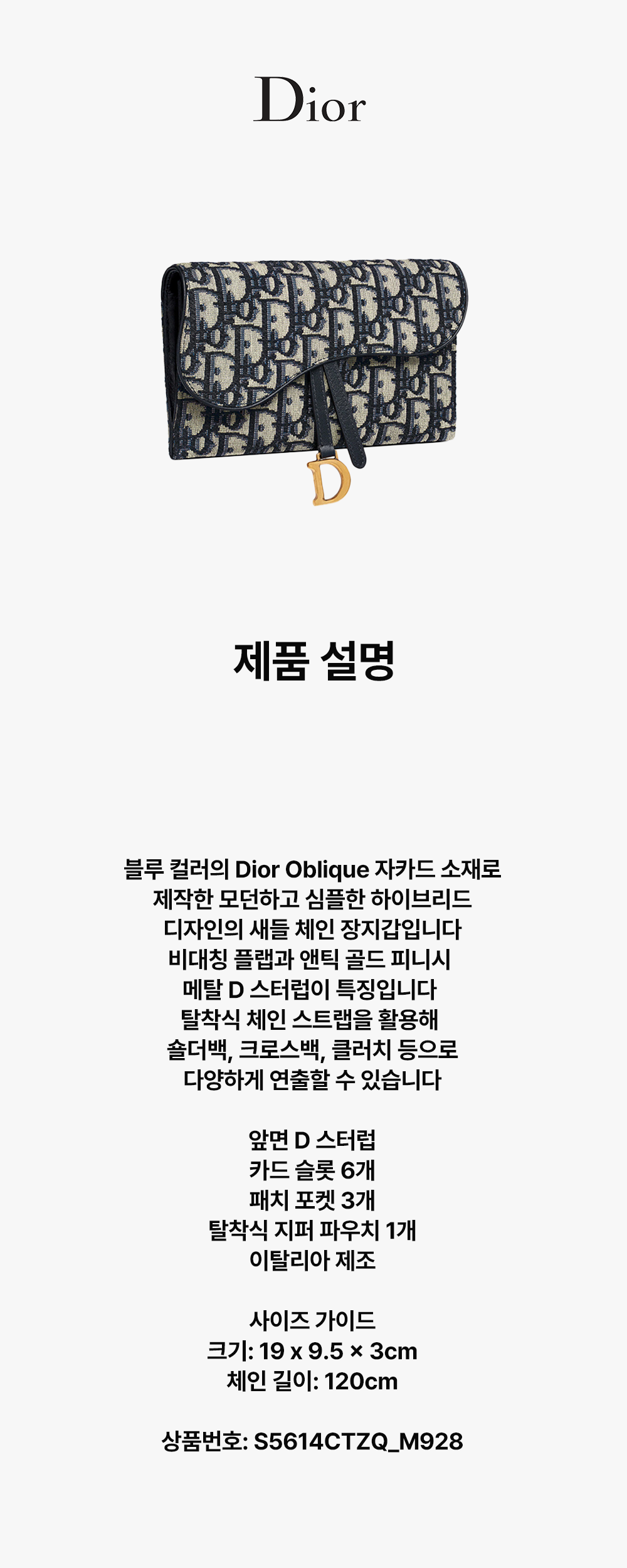 [디올] SADDLE 체인 장지갑 블루 Dior Oblique 자카드