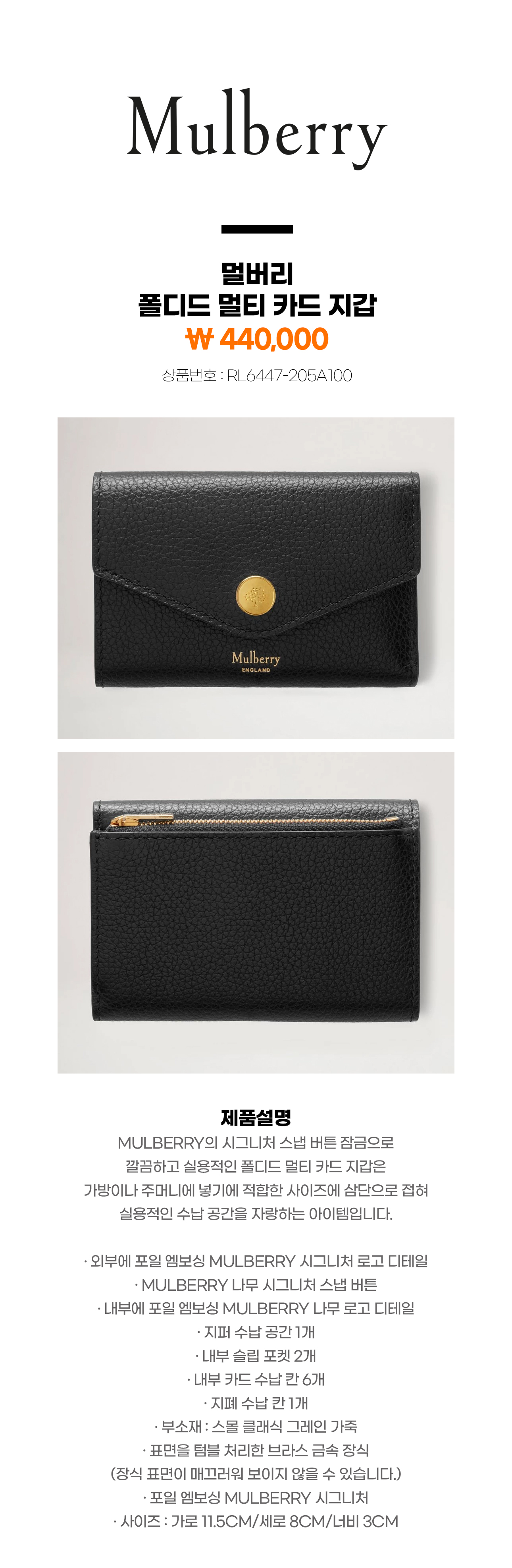 ※모델명 : RL6447-205A100 ※색상 : 블랙 스몰 클래식 그레인 가죽