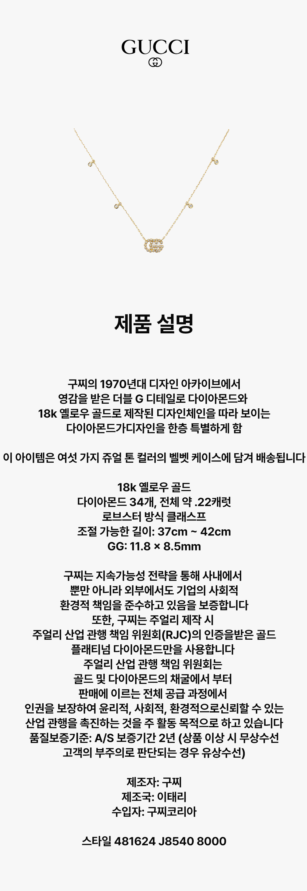[GUCCI] 러닝 G 다이아몬드 목걸이