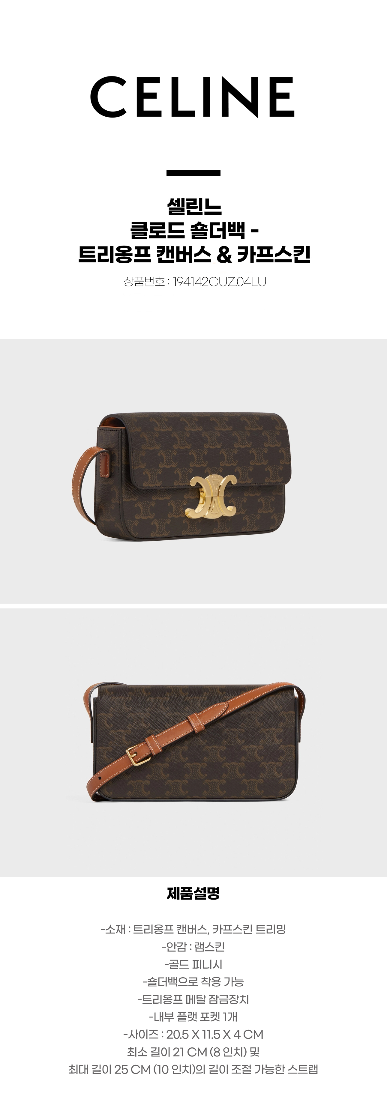 [셀린느] 클로드 숄더백 - 트리옹프 캔버스 & 카프스킨