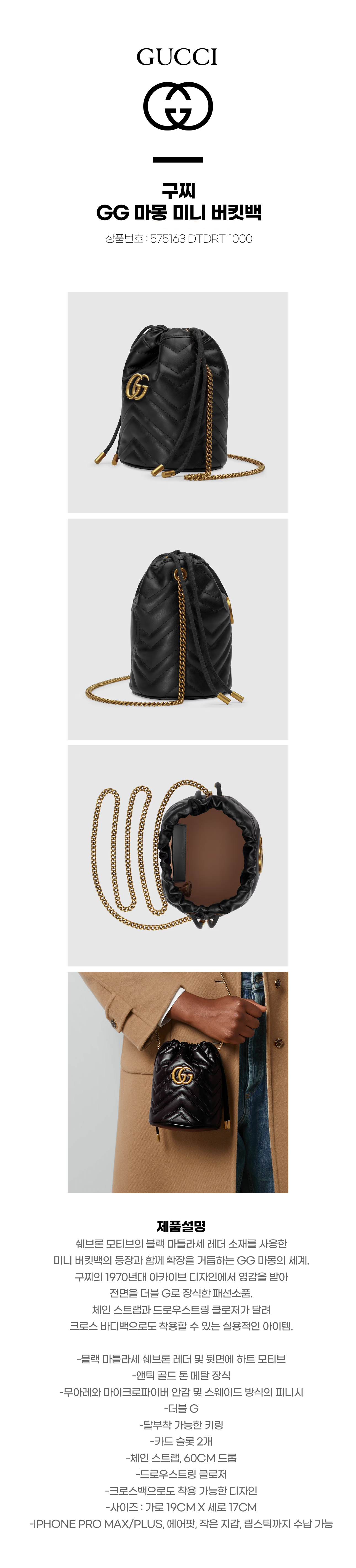 [구찌] GG 마몽 미니 버킷백