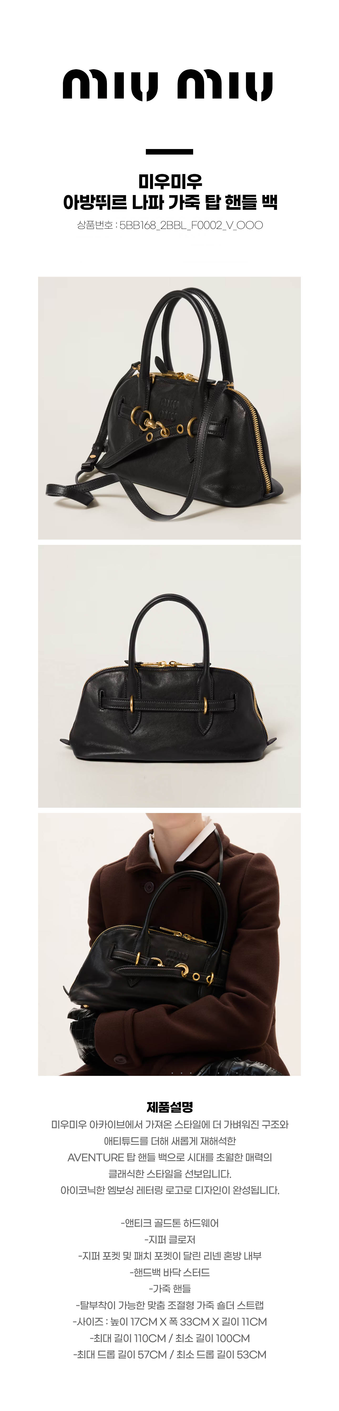 [미우미우] 아방뛰르 나파 가죽 탑 핸들 백