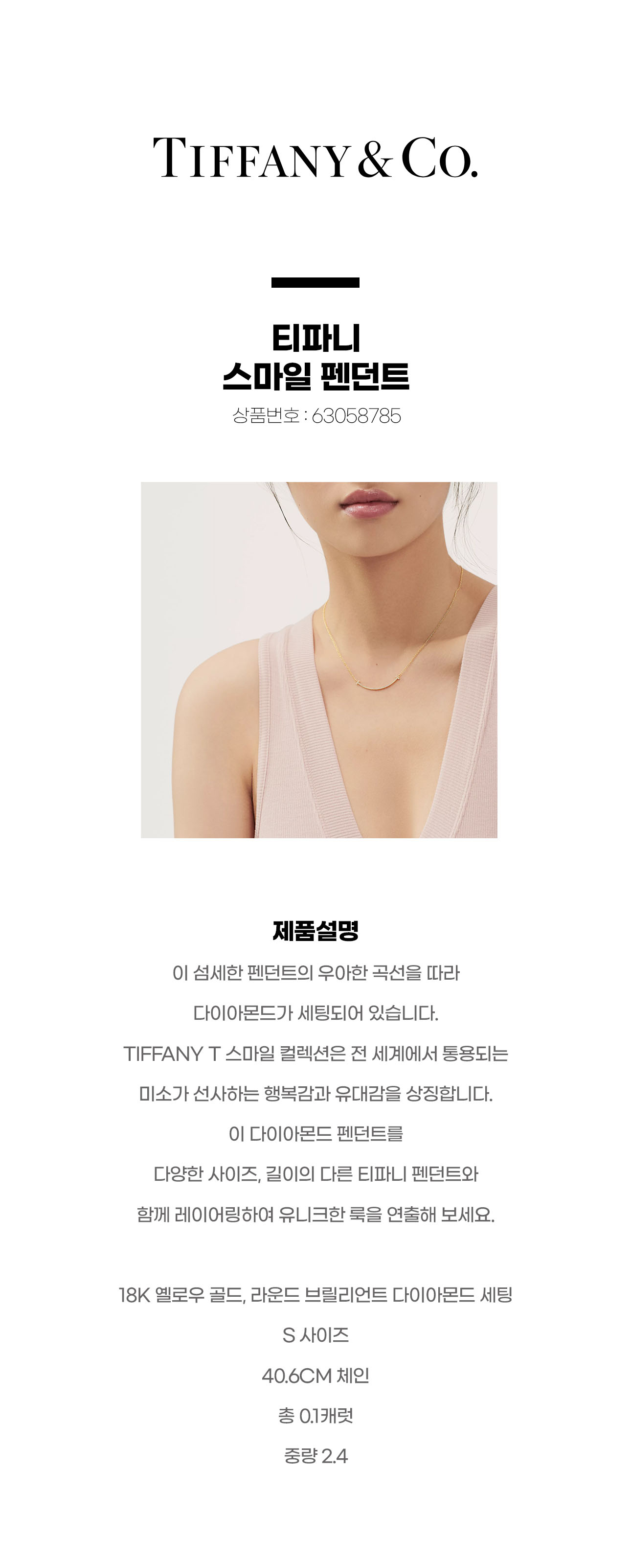 [티파니] 스마일 펜던트 옐로우골드