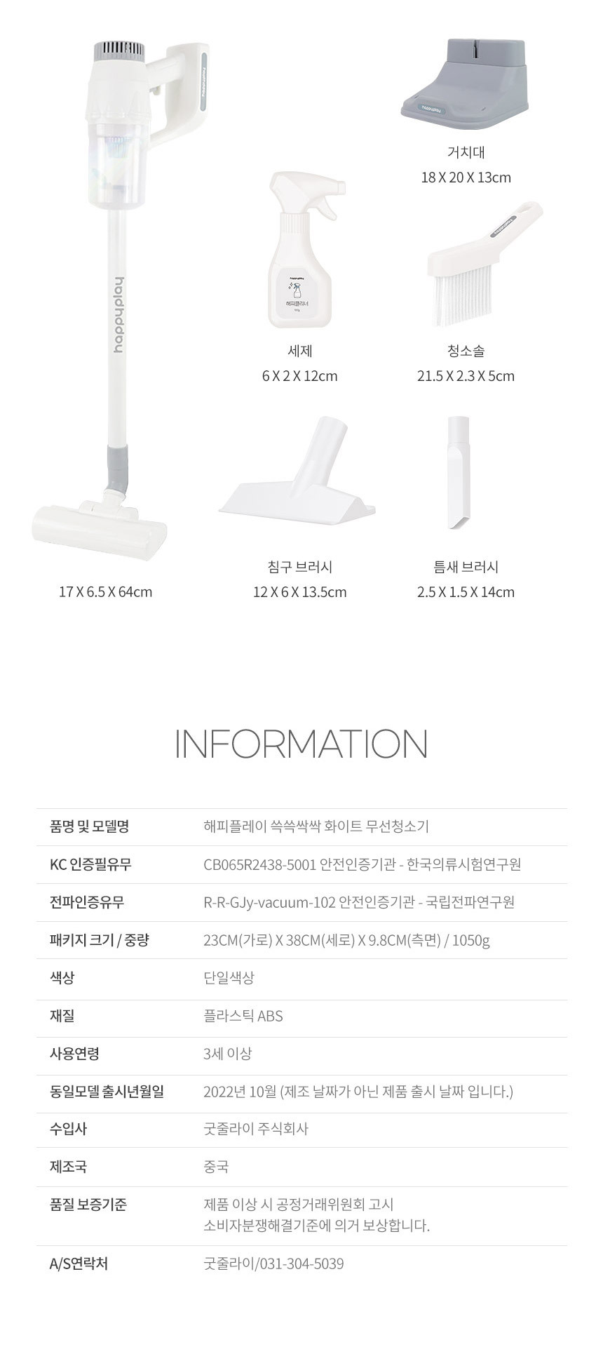 [해피플레이] 역할놀이 쓱쓱싹싹 무선청소기 유아장난감