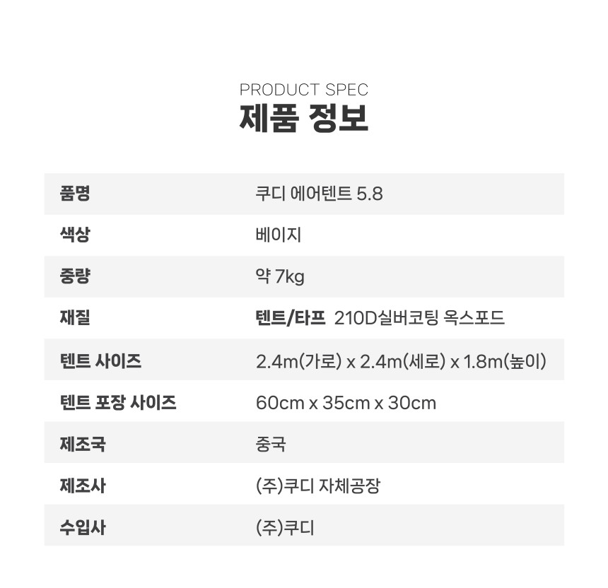 [쿠디] 원터치 에어텐트 5.8 / 베이지