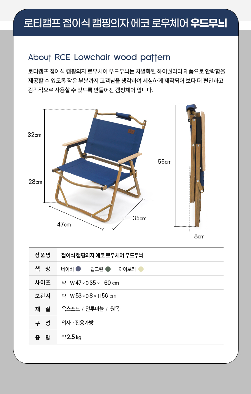 [로티캠프] 경량 로우 캠핑 의자 2개 세트 PBC-269