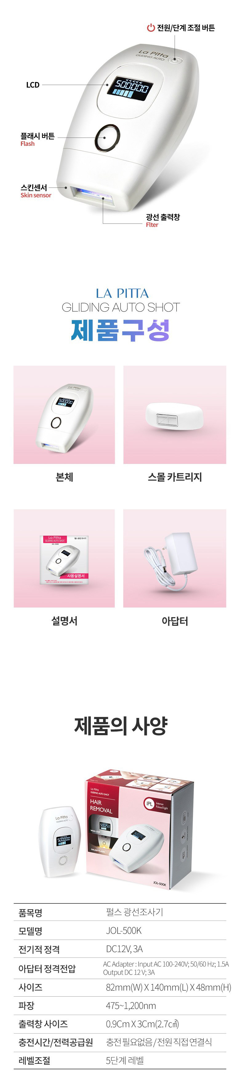 [라피타]글라이딩 오토샷 IPL 레이저 제모기