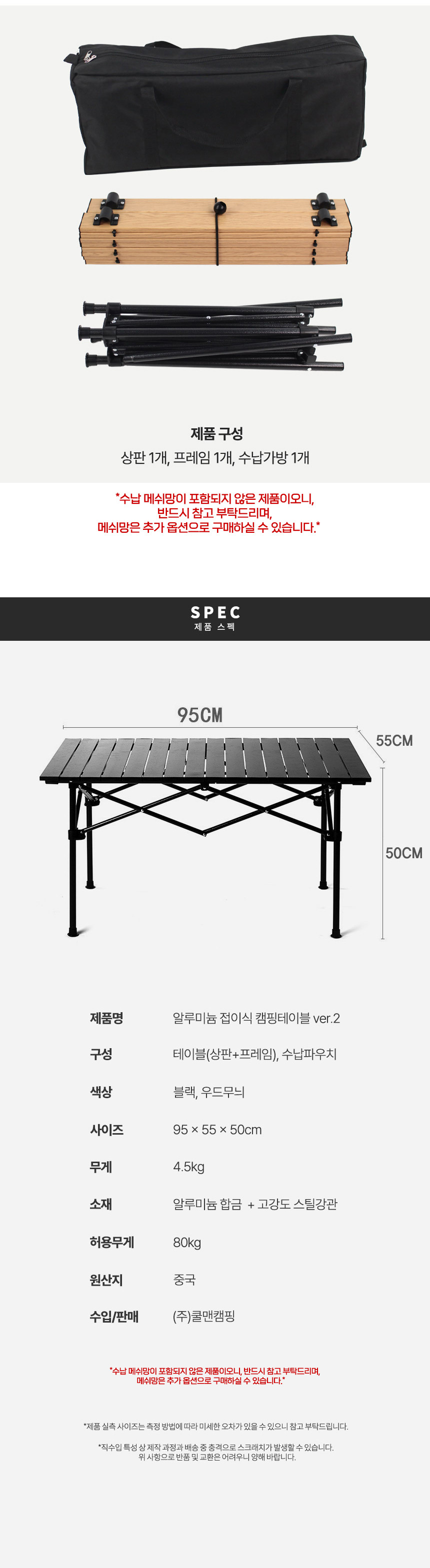 [KOOLMAN]알루미늄 퀵폴딩 캠핑 테이블 대형 95