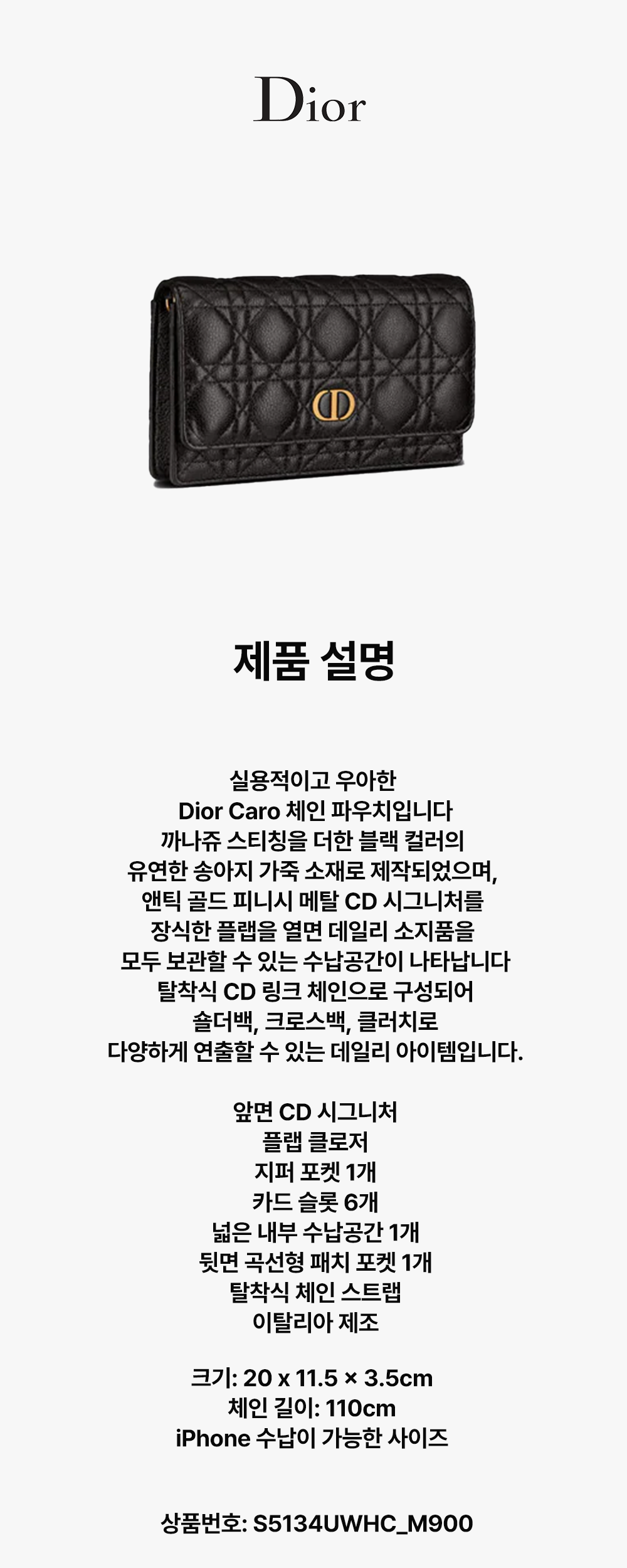 [디올] CARO 파우치 블랙 서플 까나쥬 송아지 가죽