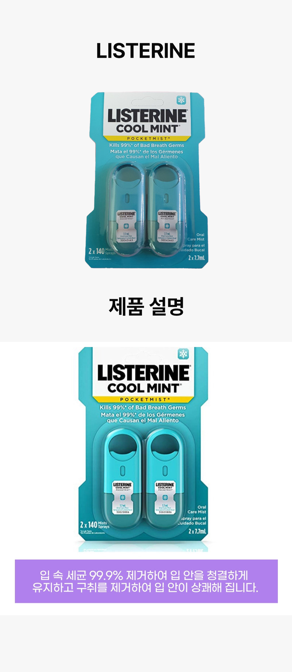 [리스테린] 포켓미스트 리스테린미스트 쿨민트 스프레이 휴대용