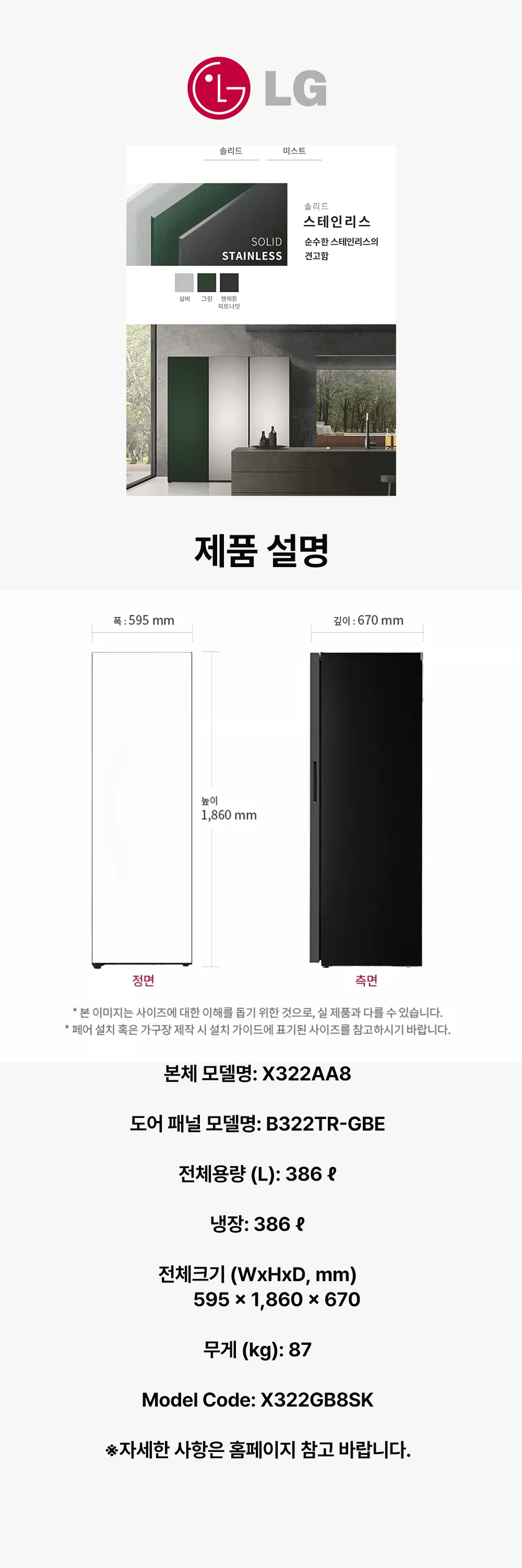[LG] 컨버터블 패키지 오브제컬렉션(냉장전용고, 우열림)