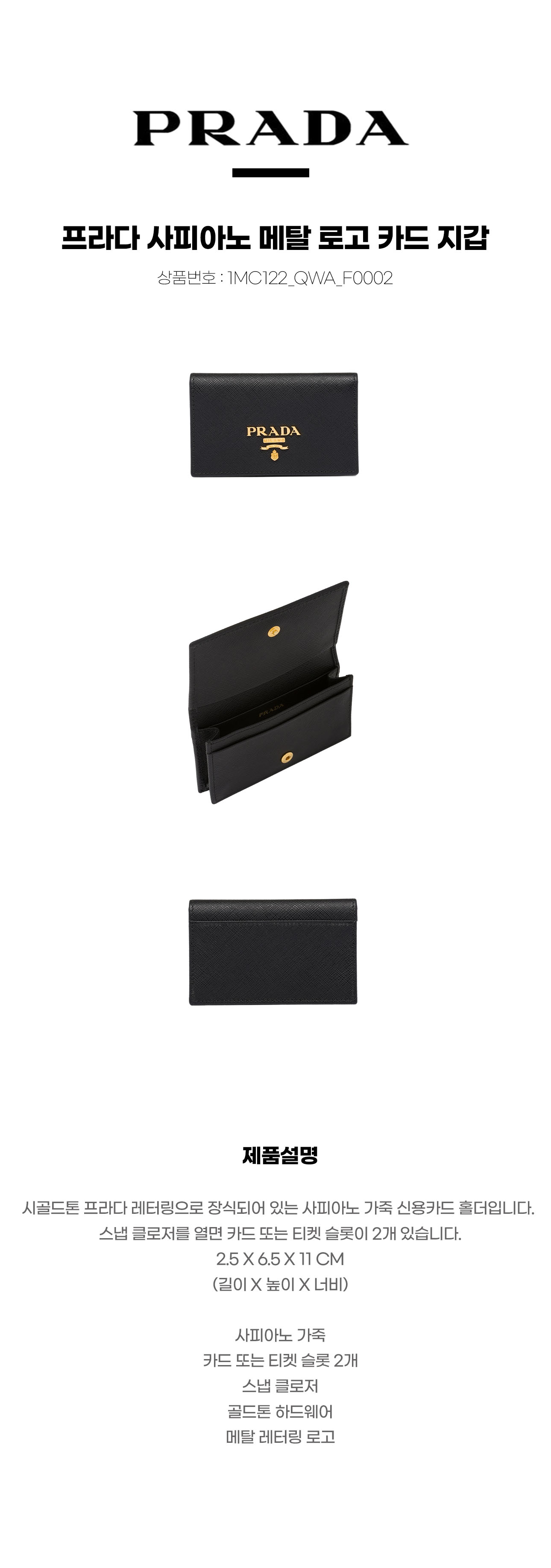 [프라다] 사피아노 메탈 로고 카드 지갑